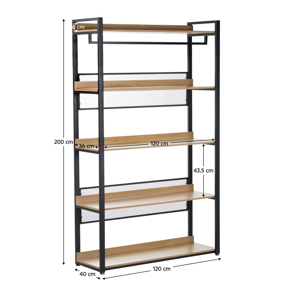 5 polcos állvány, tölgy/fekete, KILOS NEW TYP 3