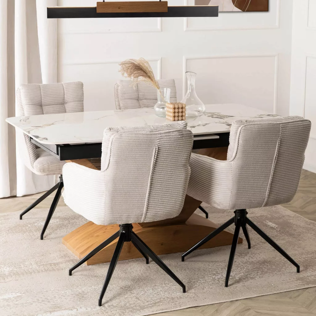 AKITA Szürke Kárpitozott Forgószék. Olyan bútordarabot keres, amely karaktert kölcsönöz otthonának, miközben kényelmet biztosít a mindennapi használat során? A szürke kárpitos Akita szék finom dizájnjával és megbízható funkcionalitásával lenyűgöző. Stílusos és időtlen megjelenésű bármilyen modern enteriőrben. Főbb jellemzők: Modern stílus - a háttámla párnáján található finom varrás kiemeli a szék elegáns jellegét. Üléskényelem - a puha ülőfelület és a vastag habszivacs réteggel töltött háttámla garantálja a kényelmet. 360°-os forgatás automatikus visszatéréssel - teljes mozgásszabadság, és felállás után a szék automatikusan visszatér a kiinduló helyzetébe. Stabil konstrukció - a fekete festett fém lábak biztonságos használatot biztosítanak. Könnyű karbantartás - a kordbársony szövetkárpit puha tapintású és foltálló. Alkalmazások: Étkezőben - ideális a közös családi étkezésekhez. Nappaliban - egy pihenősarok stílusos eleme. Közösségi terekben - tökéletes irodába, váróterembe vagy tárgyalóba. Kinek ajánlott? Azoknak, akik értékelik a modern dizájnt egy csipetnyi eleganciával. Masszív és kényelmes bútorokat kereső családoknak. Iroda- és üzlettulajdonosoknak, akiknek a praktikum és az esztétika kombinációjára van szükségük. Akita – a kényelem felé fordulás.