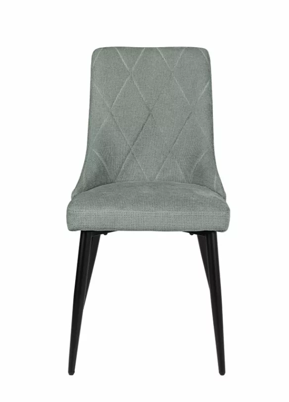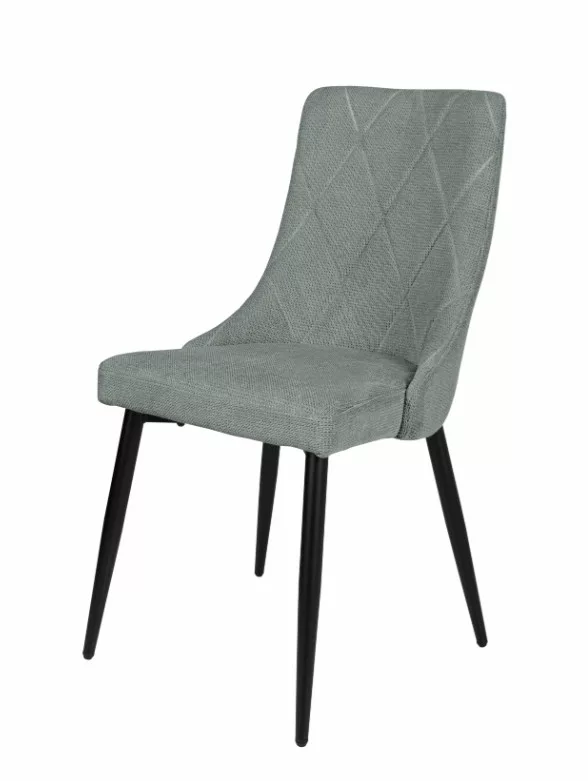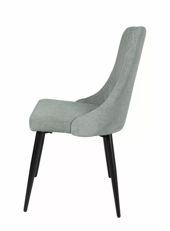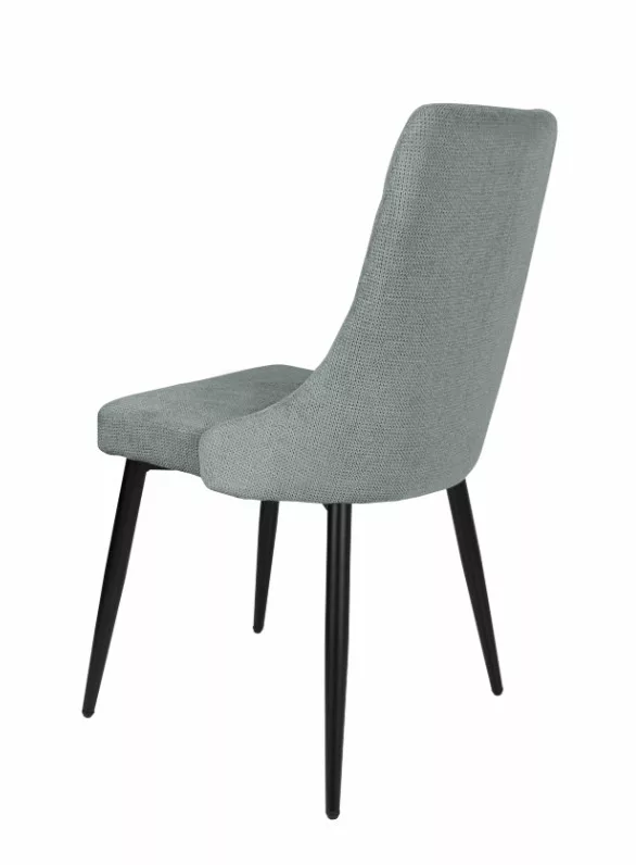 Modern étkezőszék, enyhén ívelt háttámlával, puha tapintású szövet kárpittal, fekete porfestett fém lábakkal. Beige, barna és szürke színben érhető el.