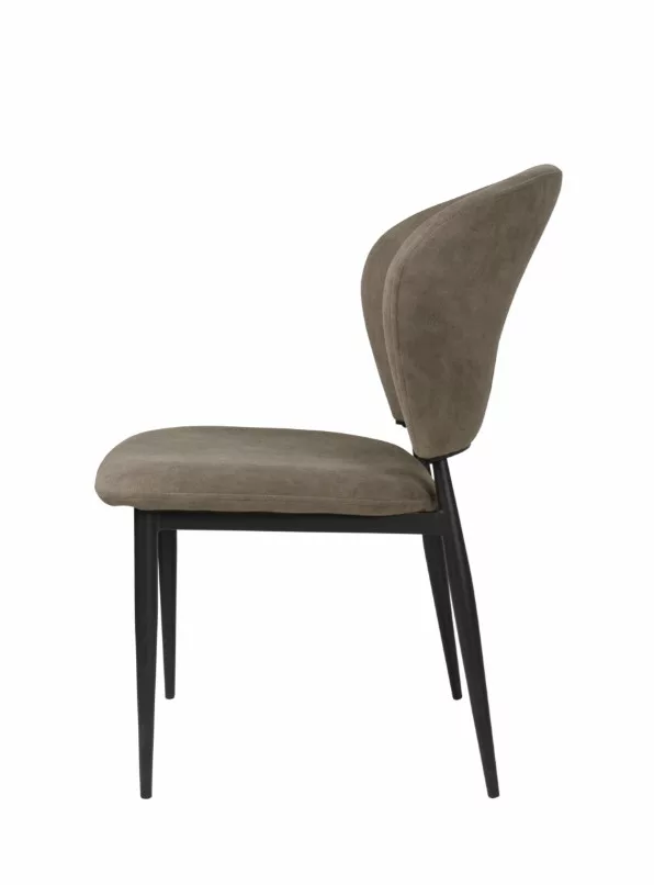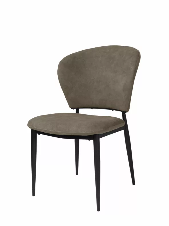 Szövet kárpit beige, barna vagy sötétkék színben és fekete porfestett fém lábak. Kényelmes ülőfelület és háttámla.