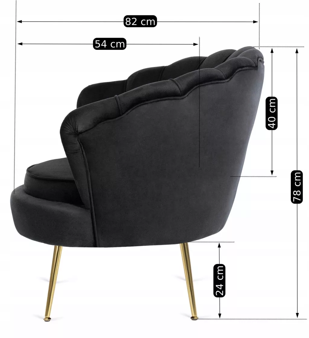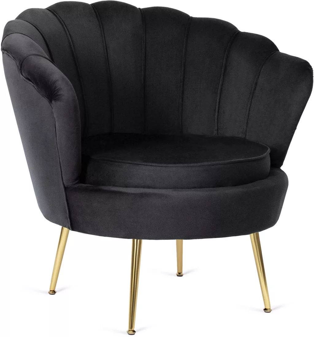 ANGEL Lounge Fotel Fekete Színben. Stílusos, kényelmes fotelt keresel nappalidba vagy hálószobádba? Értékeled a kiváló minőségű kidolgozást? Kedveled az élénk színeket? Van egy javaslatunk számodra! Az Angelo lounge fotel stílusos fekete színben. Kagylóhéj-szerű dizájnjával biztosan kiemelkedik a szobádban, és kényelme biztosan elvarázsol majd! Vigyél egyedi karaktert otthonodba az Angelo fotellel. Ismerd meg jobban, és fedezd fel minden előnyét! Kiváló minőségű anyagok. A háttámla, az ülőlap és a párna puha, rugalmas habszivacs réteggel van kitöltve. A kárpit fekete bársonyszövetből készült. Ezt az anyagot sűrű szövés, kopás- és bolyhosodásállóság, valamint könnyű tisztíthatóság jellemzi – a por és az állatszőr sem jelent problémát! Az enyhén lejtős háttámla végei karfaként is használhatók, fokozva a szék funkcionalitását. Az összhatás stílusos és ízléses.