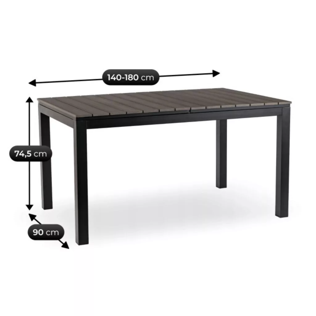 ARGOS Kerti asztal 140-180 cm Sötétszürke Tölgy/Fekete