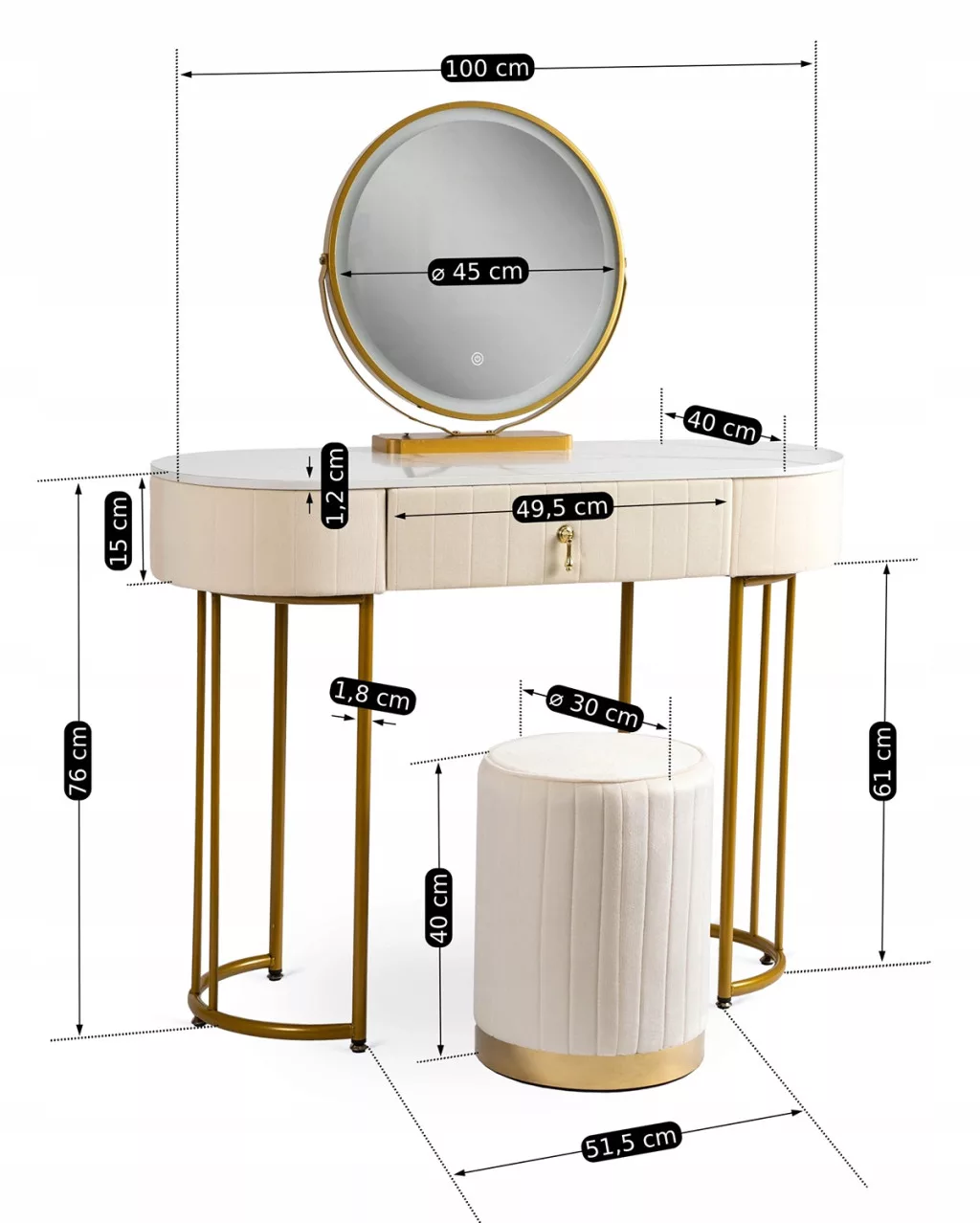 ASHLEY bézs/arany fésülködőasztal