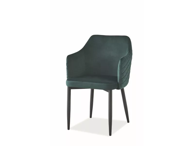 Étkezőszék fém, matt fekete lábakkal, bársony kárpittal. Hátulja stílusos gyémánt mintás.