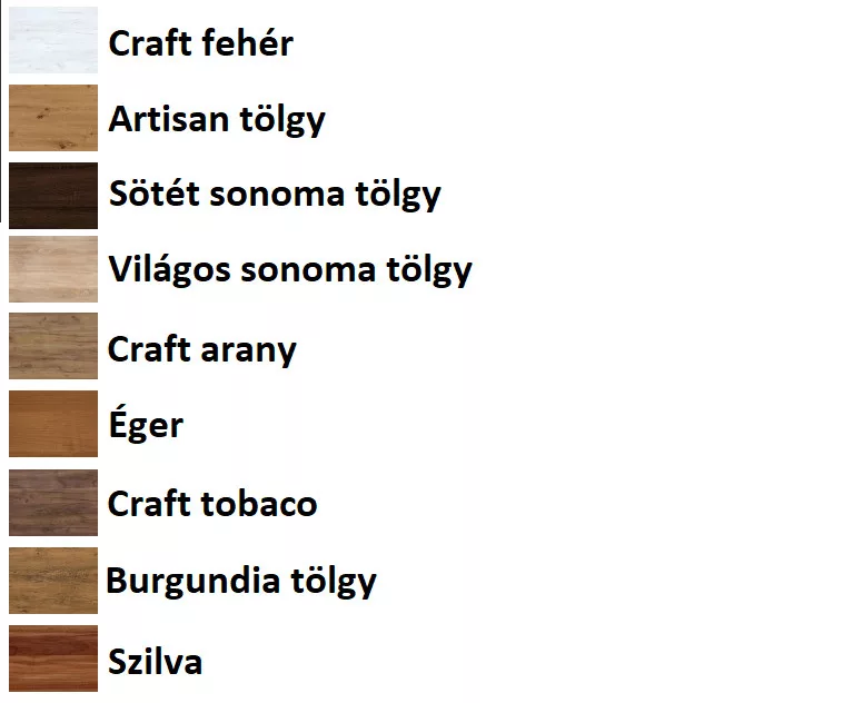 Rendelhető színek: Sötét sonoma tölgy, Craft fehér, Craft tobaco, Craft arany, Szilva, Éger, Artisan tölgy, Burgundia tölgy