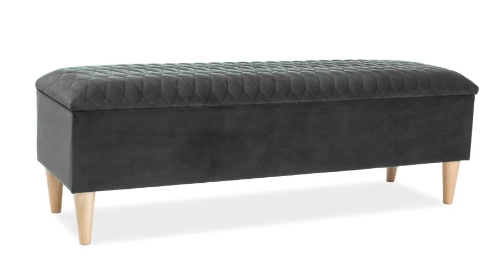 AZURRO fa lábas, szürke bársony kárpitozású ágyneműtartó/tárolópad.