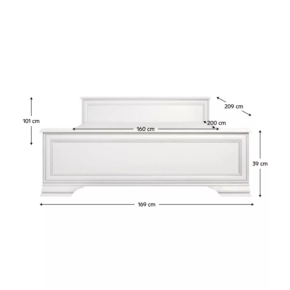 Anyag: laminált DTD Szín: alpesi fehér Méretek (SzxMéxMa): 169x209x101 cm Alvófelület (SzxHo): 160x200 cm Oldalfal magassága: 22 cm Anyag vastagsága: 1,6 cm Lábakon Lábak magassága: 8 cm Rács nélkül szállítva Ajánljuk, hogy vásárolja meg hozzá a KENTAK önálló ágyrácsot Matrac nélkül szállítva Matrac megvásárolható a kínálatunkból Matrac ajánlott magassága: 16 cm Teherbírás/személy: 100 kg Szétszerelve szállítva