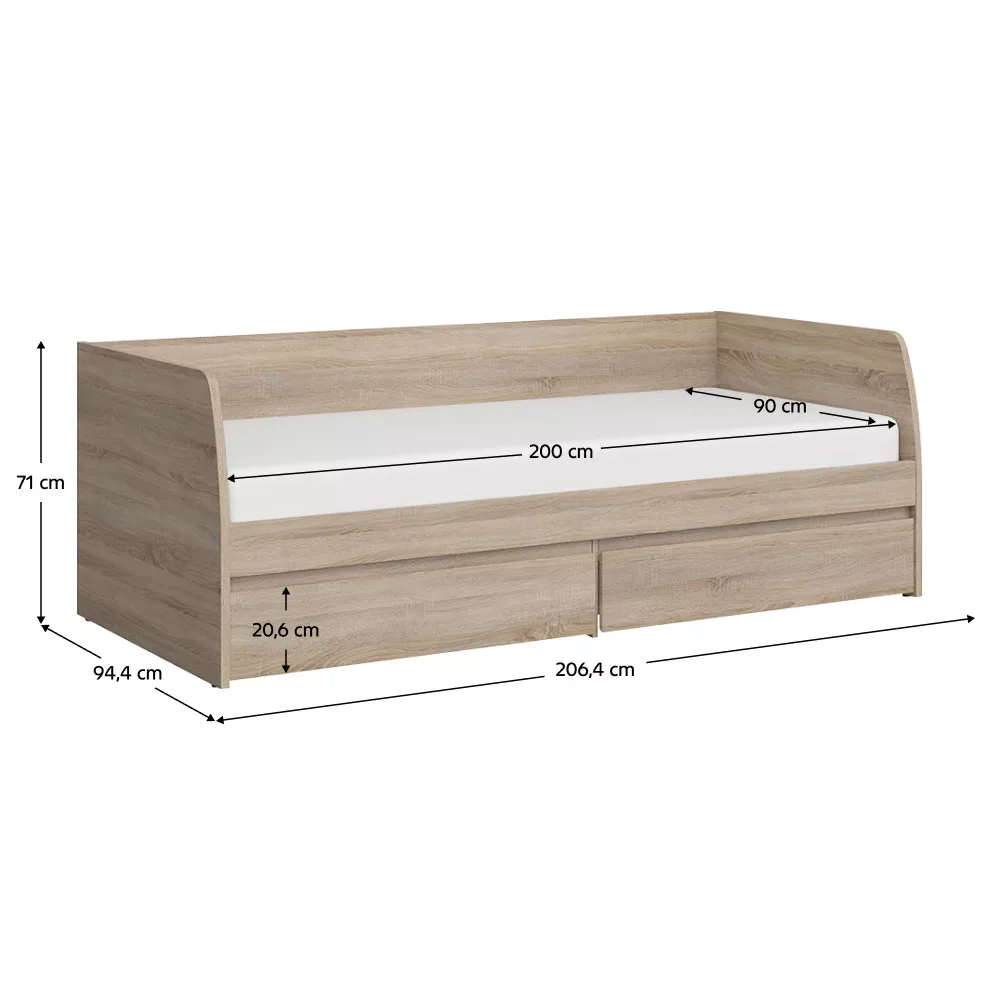 Ágy 2S, 90x200, sonoma tölgy, NORTY TYP 28