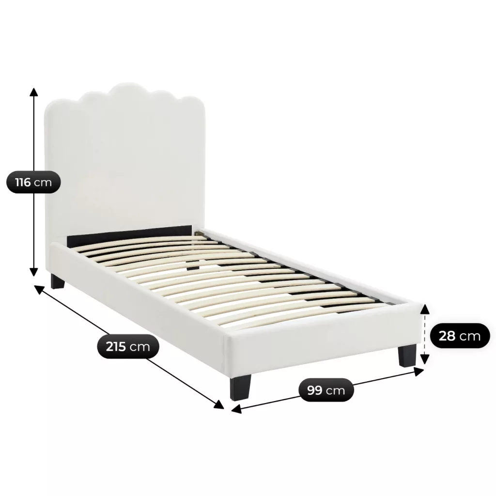 CRATER 90 x 200 krémszínű bársony kárpitozott ágy. Olyan ágyat keresel, amely a stílusos dizájnt ötvözi a kényelemmel – tökéletes egy modern tinédzser szobájába? A Crater ágy egy olyan dizájn, amely első pillantásra magával ragad, és egyedi helyet teremt a kikapcsolódásra. Miért válaszd a Crater ágyat? A bársony anyag – bársonyos tapintású, elegáns és tartós – gyönyörűen fokozza otthonod jellegét. A magas fejtámla kényelmes támaszt nyújt tanulás, olvasás és szünetek közben. A falábak stabilitást kölcsönöznek a szerkezetnek. A rugalmas lécekből készült váz garantálja a kényelmet, a megfelelő támaszt és a pihentető alvást. A 90 x 200 cm-es alvófelület – ideális egy személy számára. Maximális teherbírás 250 kg – a masszív konstrukció évekig tartó tartósságot biztosít. A Crater ágy tökéletesen illeszkedik a világos, pasztellszínű dizájnokba és a modern belső terekbe. Puhaságot és kellemes hangulatot visz a szobába, így a mindennapi pihenés igazi élvezet. Fedezd fel a kényelem új dimenzióját – válaszd a Crater ágyat. Megjegyzés: A matrac nem tartozék.