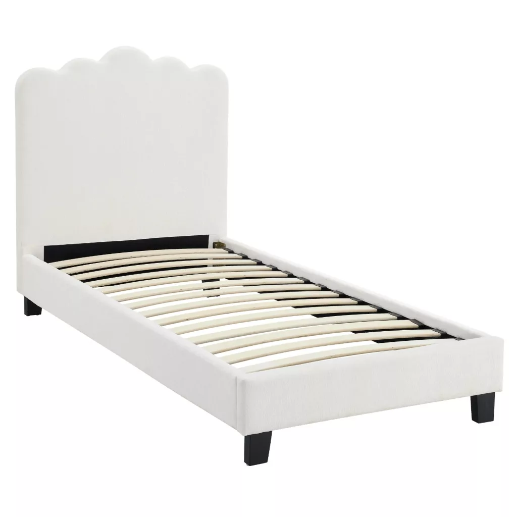 CRATER 90 x 200 krémszínű kárpitozott ágy. A tökéletes ágyat keresed egy modern tinédzser szobájába? A Crater modell tökéletes választás. Ez egy olyan bútordarab, amely otthonosságot visz a szobába, és a hétköznapi estéket a pihenés és a jólét pillanataivá varázsolja. Mi teszi egyedivé a Crater ágyat? A kárpitozott anyag puha, kellemes tapintású és könnyen tisztítható. A magas, kárpitozott fejtámla kényelmes támaszt nyújt tanulás, olvasás vagy pihenés közben. A tömör fa lábak megfelelő stabilitást biztosítanak a szerkezetnek. A váz rugalmas lécekből készült, amelyek pihentető alvást biztosítanak, és hozzájárulnak az ágy tartósságához. A 90 x 200 cm-es alvófelület tökéletes egy személy számára. A maximális teherbírás 250 kg, így mindennapi használatra alkalmas. A Crater ágy remekül mutat világos, finom elrendezésekben és modern, fiatalos enteriőrökben is, tökéletes teret teremtve a kikapcsolódáshoz. Tapasztalj meg egy új szintű kényelmet - válaszd a Crater ágyat. Megjegyzés: A matrac nem tartozék.