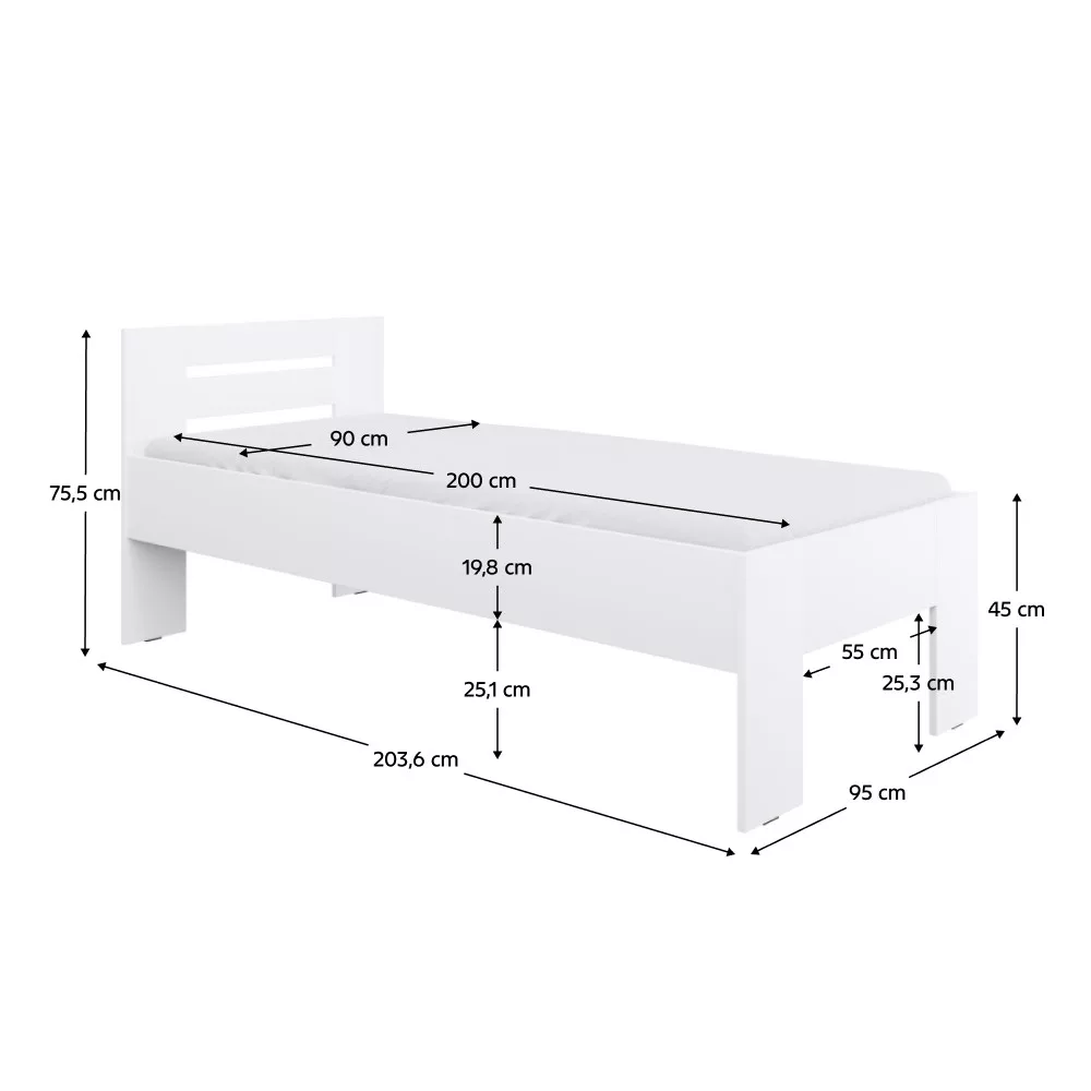Ágy, 90x200, fehér, BASIS