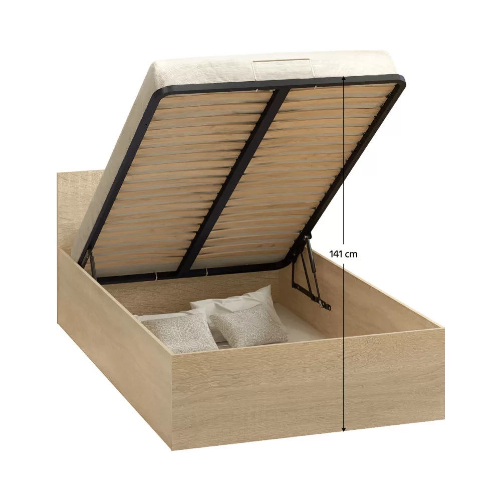 Ágy fém ráccsal és tárolóhellyel, 120x200, sonoma tölgy, DOLI