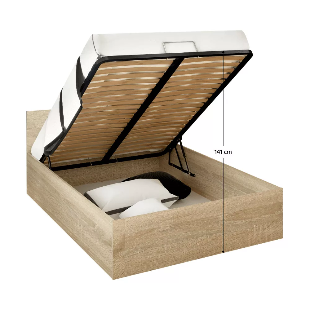 Ágy fém ráccsal és tárolóhellyel, 140x200, sonoma tölgy, DOLI