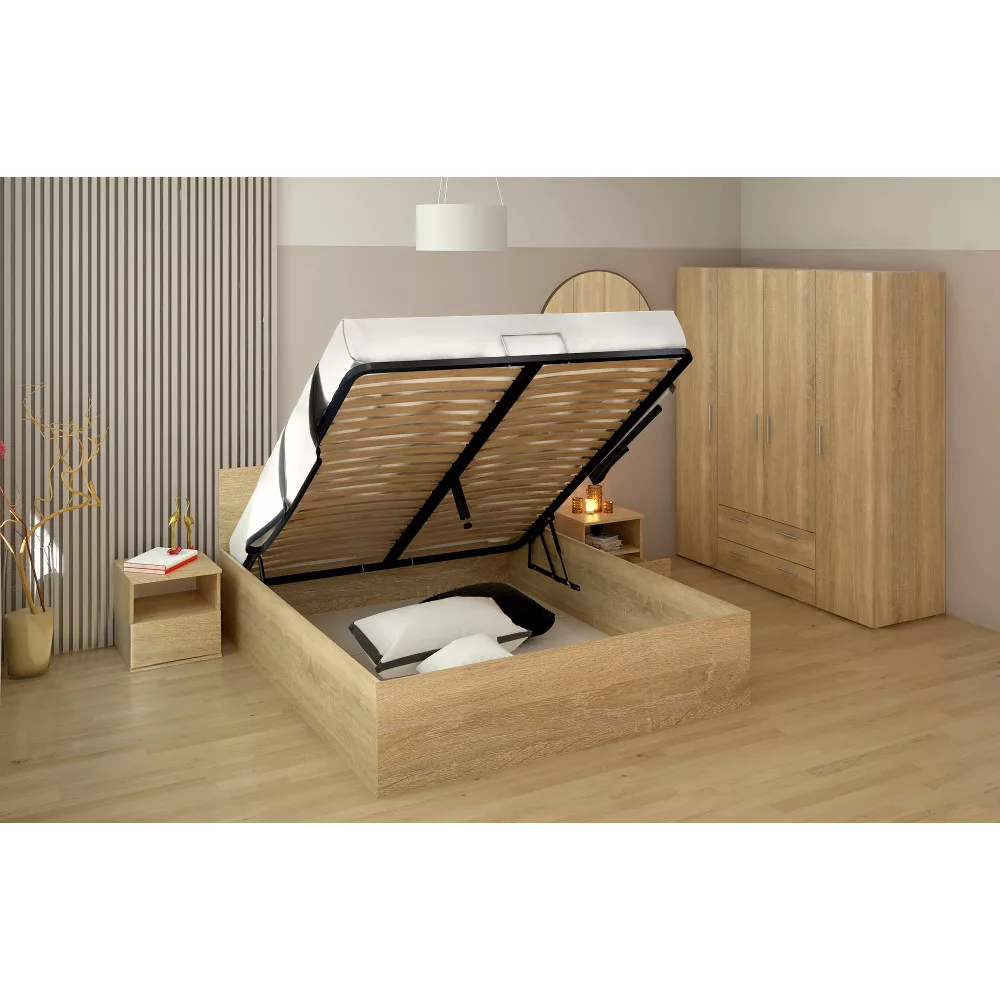 Ágy fém ráccsal és tárolóhellyel, 160x200, sonoma tölgy, DOLI
