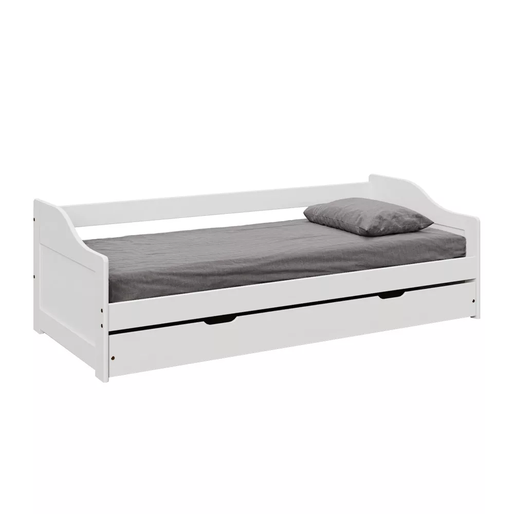 Ágy kihúzható pótággyal, fehér, tömörfa, 90x200, LAURA NEW