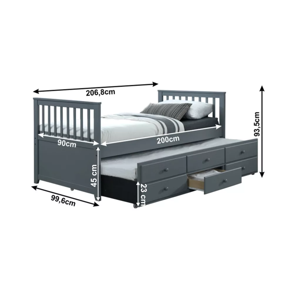 Ágy pótággyal, 90x200, szürke, AUSTIN NEW