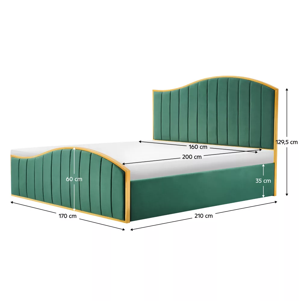 Ágy ráccsal, 160x200, zöld Velvet szövet/gold arany króm, GEORGIA