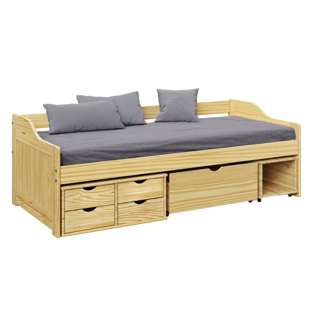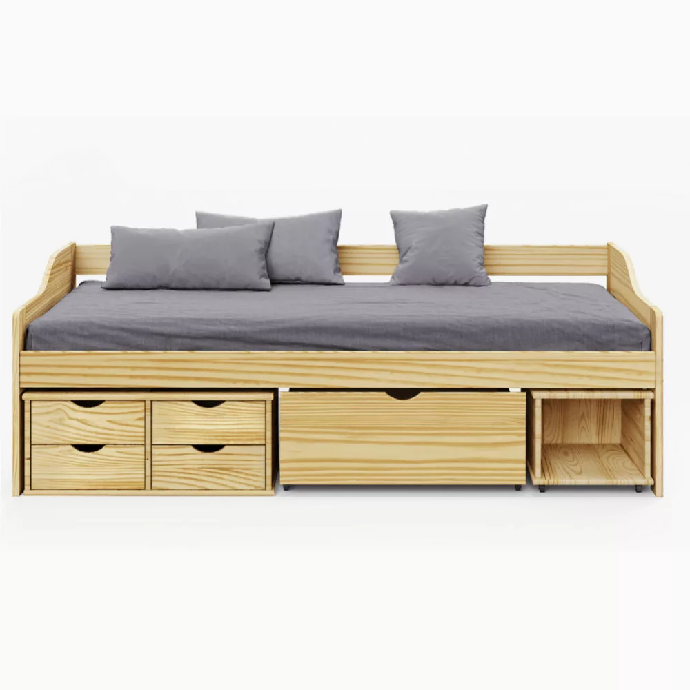 Ágy tárolóhellyel, természetes, tömörfa, 90x200, MAXI NEW