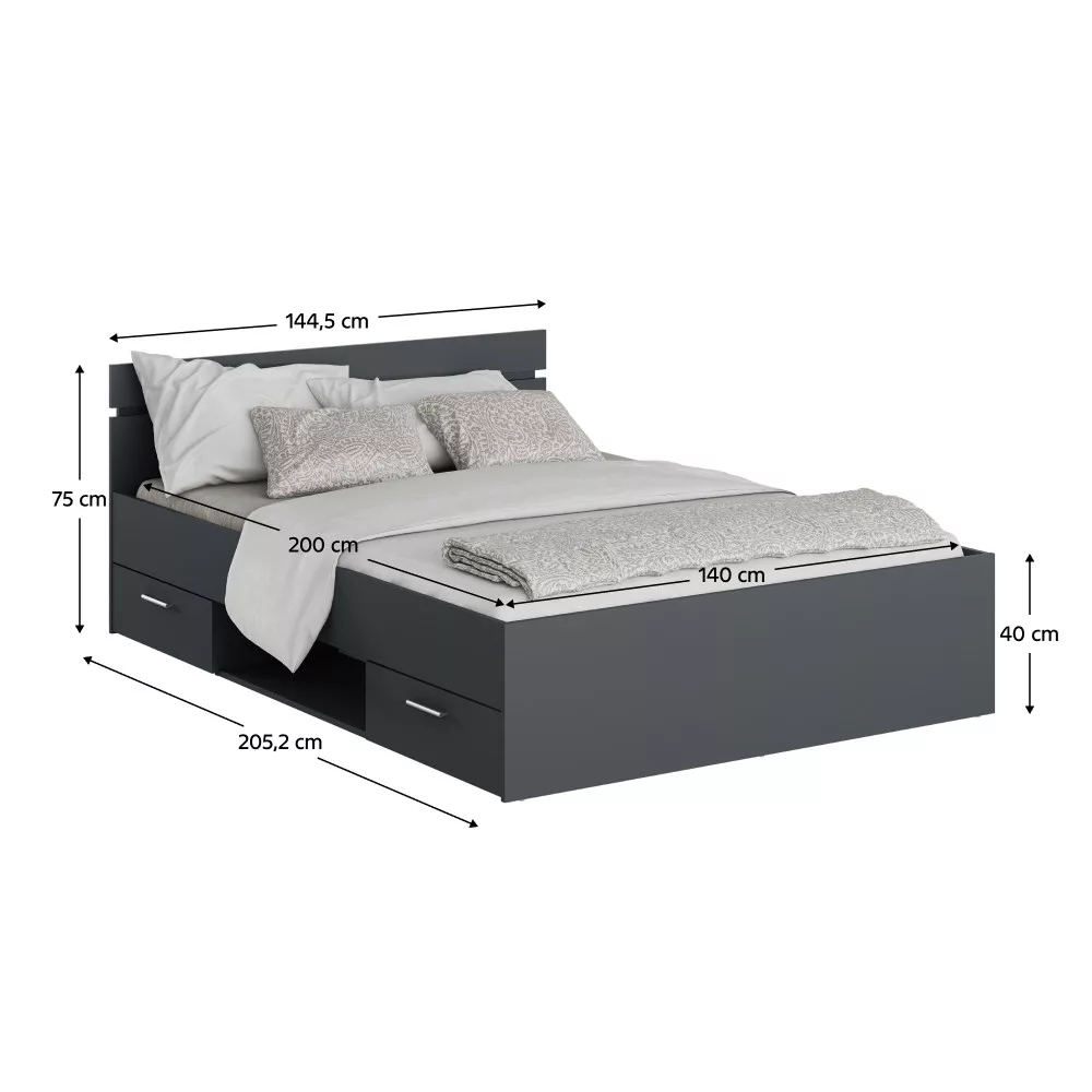 Ágykeret, 140x200, grafit, MICHIGAN NEW