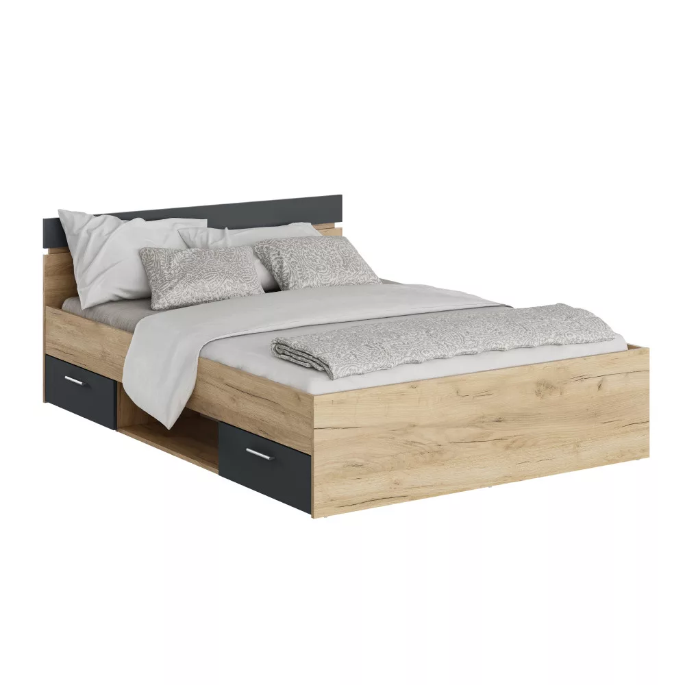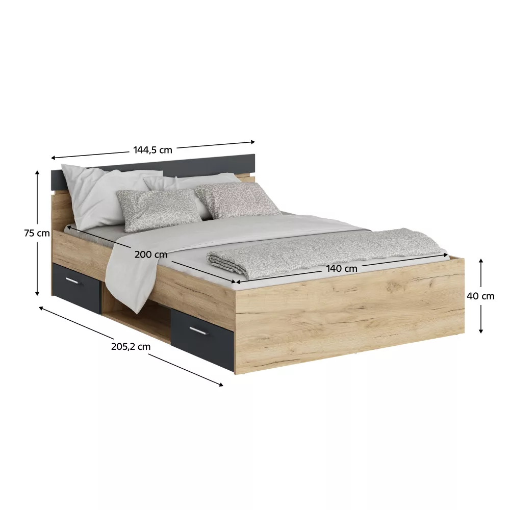 Ágykeret, 140x200, tölgy artisan/grafit, MICHIGAN NEW