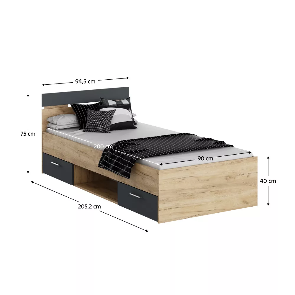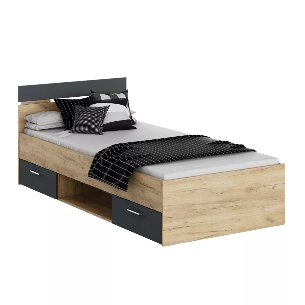 Ágykeret, 90x200, artisan tölgy/grafit, MICHIGAN NEW