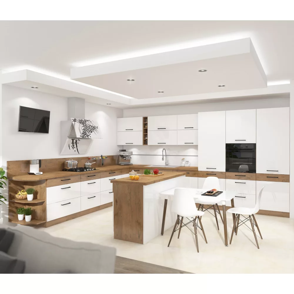 Konyhabútorok és étkezők > Konyhabútor > Méretre gyártott konyhák > Vega fehér fényes HG / lancelot tölgy