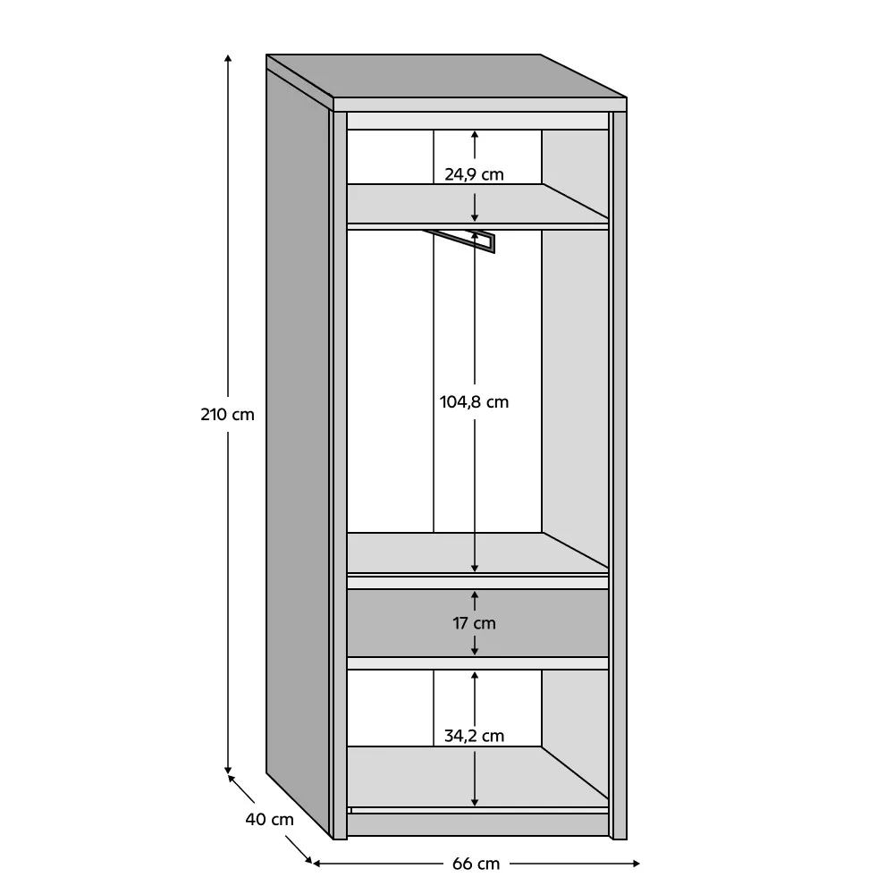 Méretek (SzxMéxMa): 66x40x210 cm
