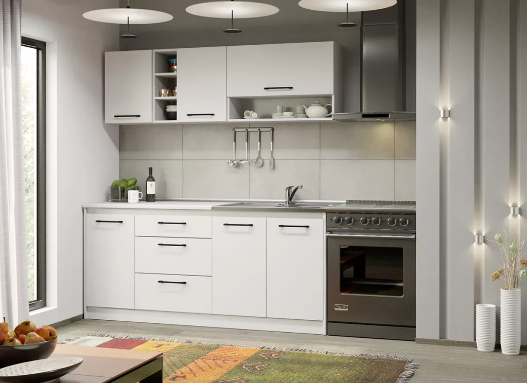 Alaszka fehér konyhánk kollekciója, alsó és felsőteste tágas tárolóhelyekkel rendelkezik a konyhai eszközök számára. A testek 16 mm-es préselt forgácslapból készülnek. A fehér felület eleganciát és kifinomultságot közvetít.