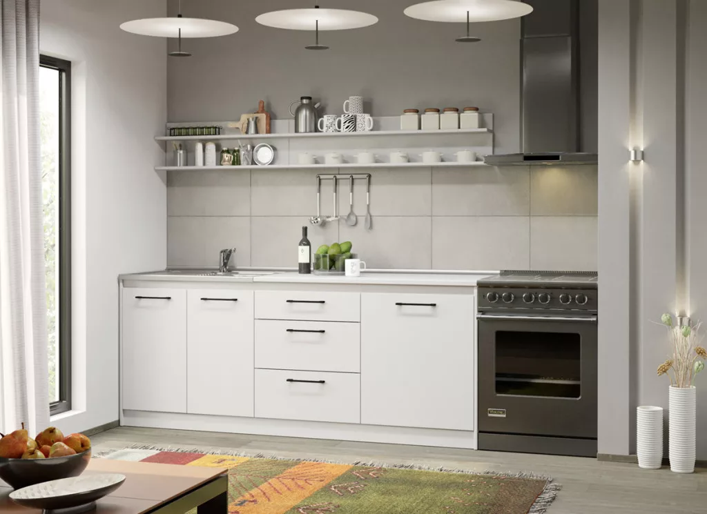 Alaszka fehér konyhánk kollekciója, alsó és felsőteste tágas tárolóhelyekkel rendelkezik a konyhai eszközök számára. A testek 16 mm-es préselt forgácslapból készülnek. A fehér felület eleganciát és kifinomultságot közvetít.