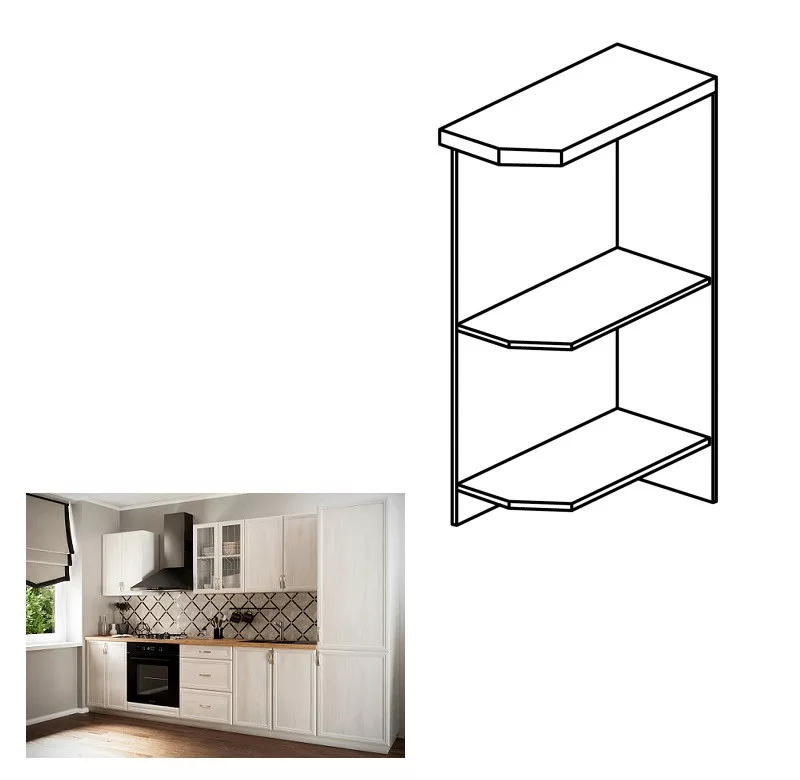 D25PZ nyitott alsószekrény fehér színben a rusztikus SICILIA konyhabútorhoz