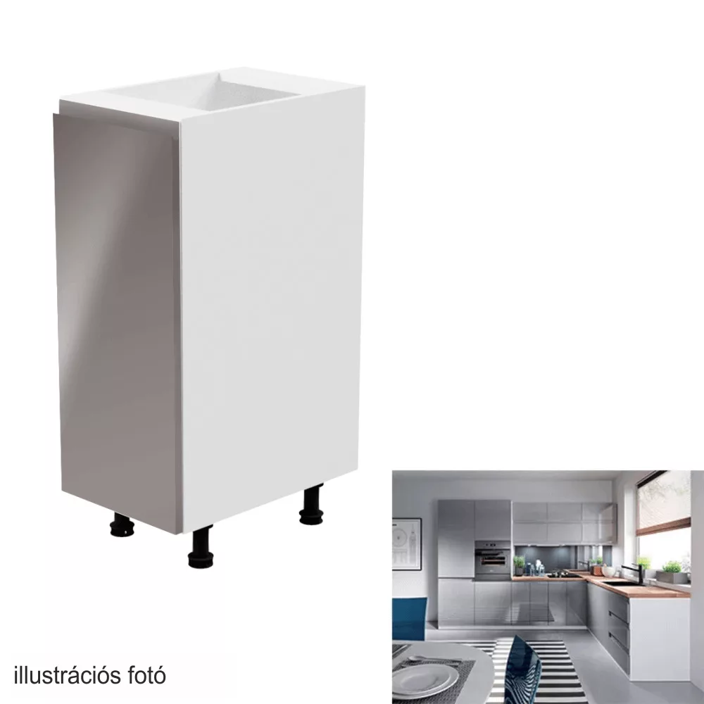 Alsószekrény, fehér/szürke extra magasfényű, balos, AURORA D30