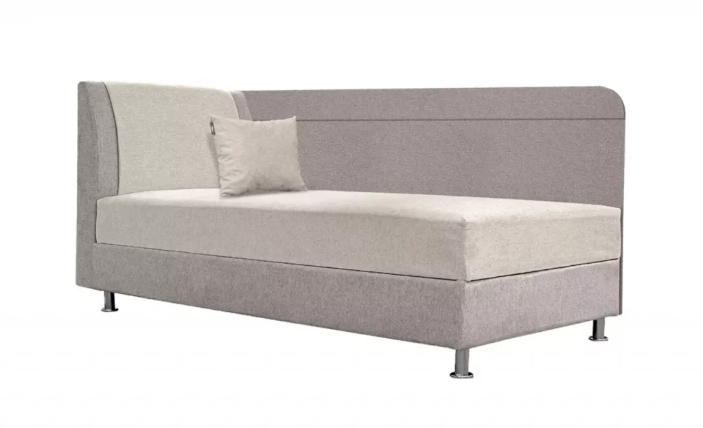 jobbos-balos állásban rendelhető, fehér laminált ágyneműtartó, 10 cm-es króm láb, vízlepergető szövet, extra rugós, ágyneműtartós