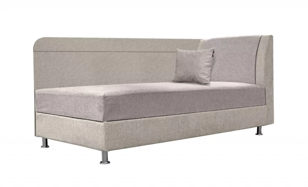 jobbos-balos állásban rendelhető, fehér laminált ágyneműtartó, 10 cm-es króm láb, vízlepergető szövet, extra rugós, ágyneműtartós