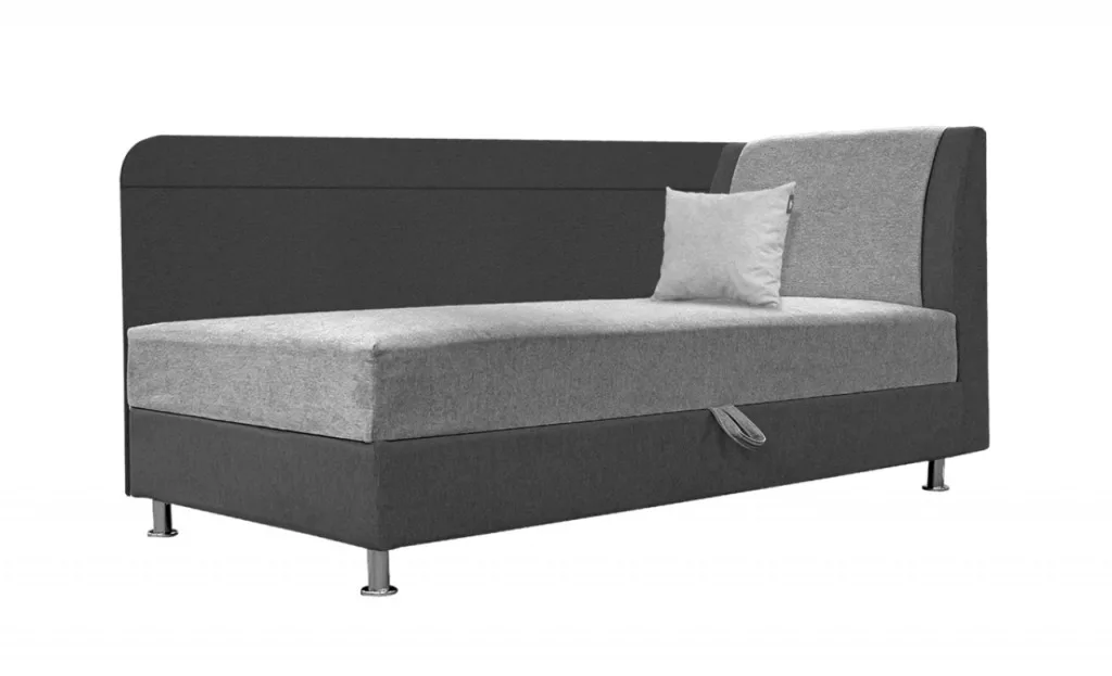 jobbos-balos állásban rendelhető, fehér laminált ágyneműtartó, 10 cm-es króm láb, vízlepergető szövet, extra rugós, ágyneműtartós