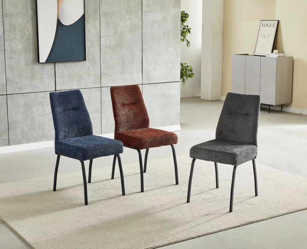 Ez az étkezőszék a kényelmet és a funkcionalitást ötvözi modern, rugós kialakításával, így kiváló választás modern étkezőkbe. Három kárpitozási színben kapható – kék, barna és szürke –, így különféle belsőépítészeti megoldásokhoz illik. A puha és tartós anyag hosszú élettartamot biztosít.