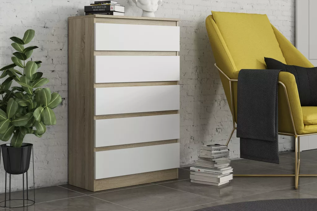 Az ARIEL 1 fiókos szekrény a lengyel Meblohand gyártó modern bútordarabja, amely tökéletes hálószobába, előszobába vagy nappaliba. Minimalista dizájn és funkcionalitás jellemzi, öt tágas, fogantyú nélküli fiókkal, ami elegáns megjelenést kölcsönöz neki.