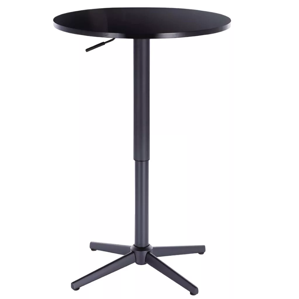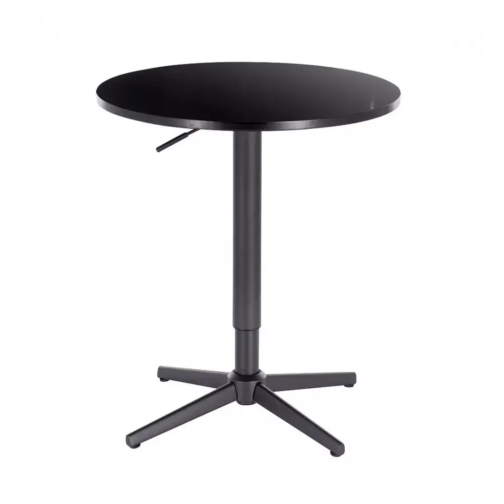 Modern bárasztal, teljes fekete színben kapható. Az asztal magassága állítható, a tartóoszlopban gázlift található. A kerek asztallap MDF anyagból készült, átmérője 60 cm. Az asztal tartóoszlopa fémből készült, matt fekete porfestékkel bevonva a környezeti hatásokkal szembeni jobb védelem érdekében. A bárasztal maximális teherbírása 100 kg.