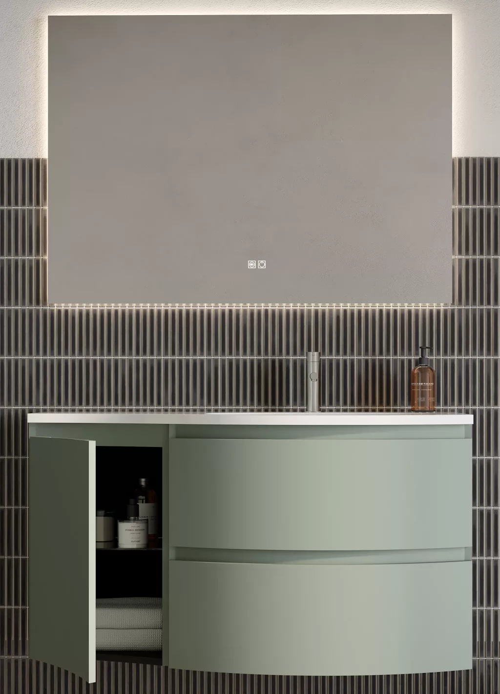 Armonia 105 cm-es fürdőszobaszekrény zsálya+ mosdó balos