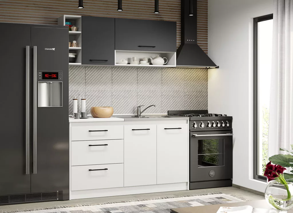 Az Arthur konyhablokk alsó, felső, és magas elemei tágas tárolóhelyet biztosít a beépíthető készülékek, és a konyhai eszközök számára. Az elemek 16 mm-es préselt forgácslapból készülnek. A gyöngyházfehér és az antracitszürke kombinációja eleganciát és kifinomultságot közvetít.