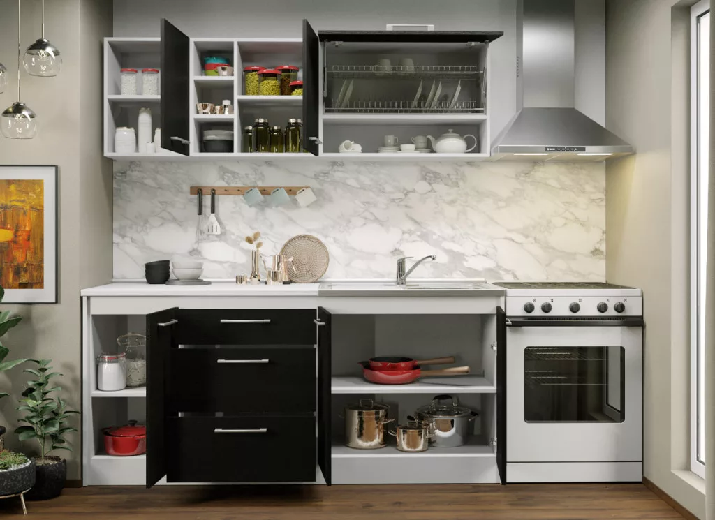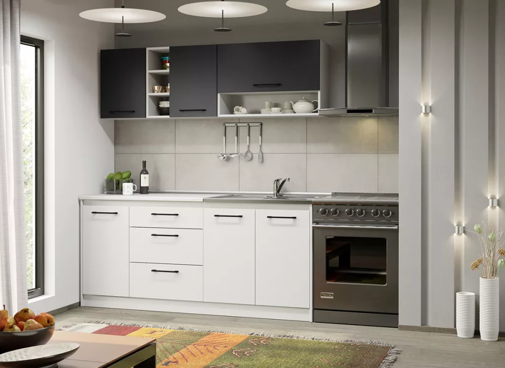 Az Arthur konyhablokk alsó, felső, és magas elemei tágas tárolóhelyet biztosít a beépíthető készülékek, és a konyhai eszközök számára. Az elemek 16 mm-es préselt forgácslapból készülnek. A gyöngyházfehér és az antracitszürke kombinációja eleganciát és kifinomultságot közvetít.