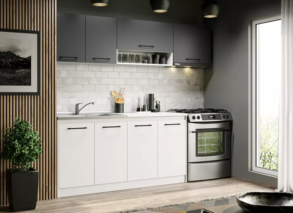 Az Arthur konyhablokk alsó, felső, és magas elemei tágas tárolóhelyet biztosít a beépíthető készülékek, és a konyhai eszközök számára. Az elemek 16 mm-es préselt forgácslapból készülnek. A gyöngyházfehér és az antracitszürke kombinációja eleganciát és kifinomultságot közvetít.