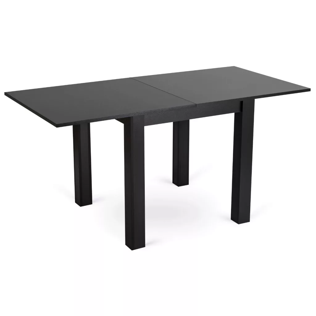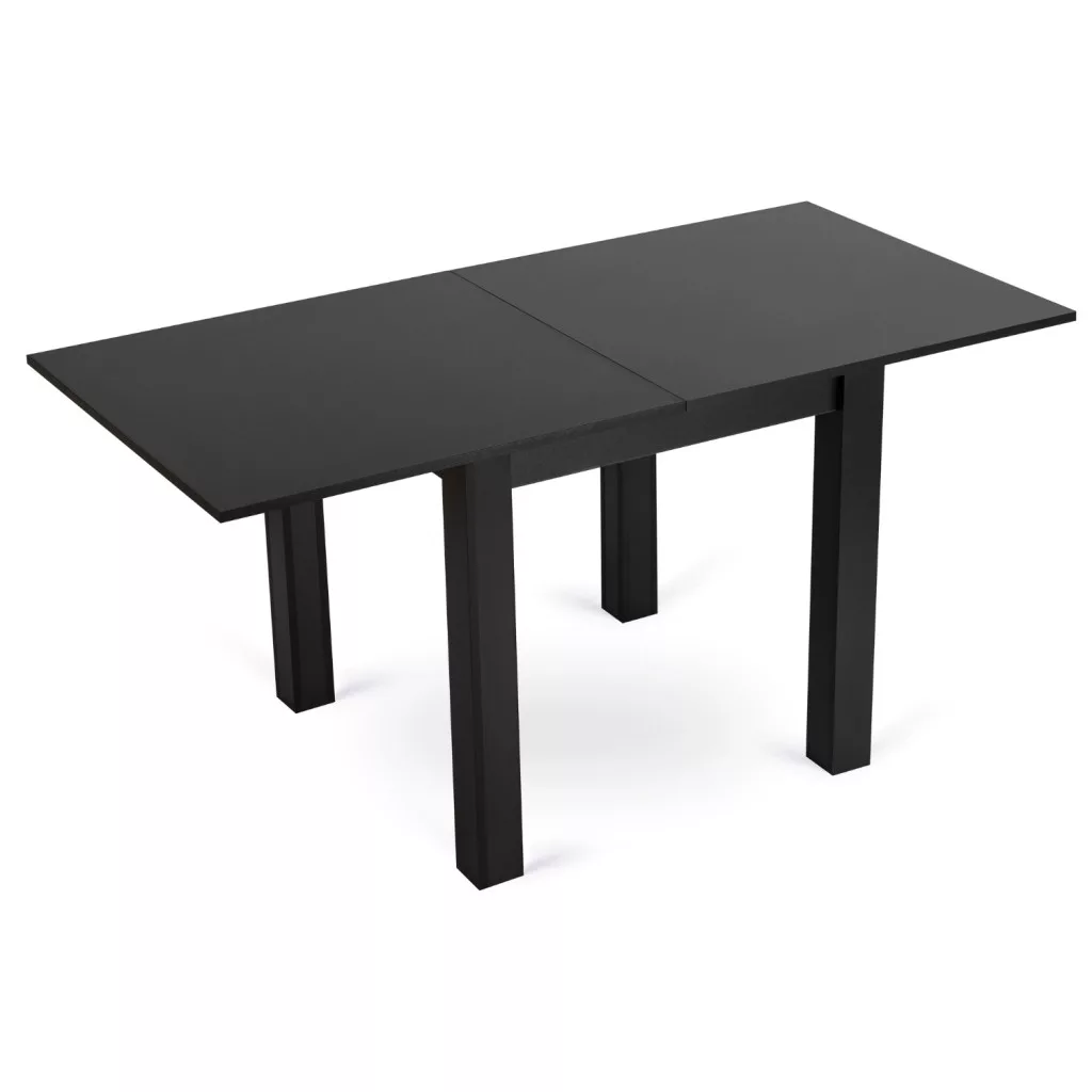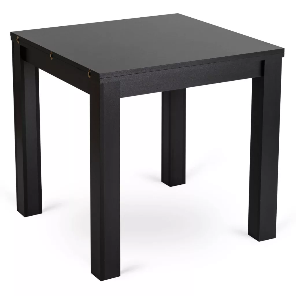 Kinyitható étkezőasztal MAX fekete, forgácslapból. Alap: 80×80 cm, bővített: 80×160 cm, magasság: 78,5 cm.