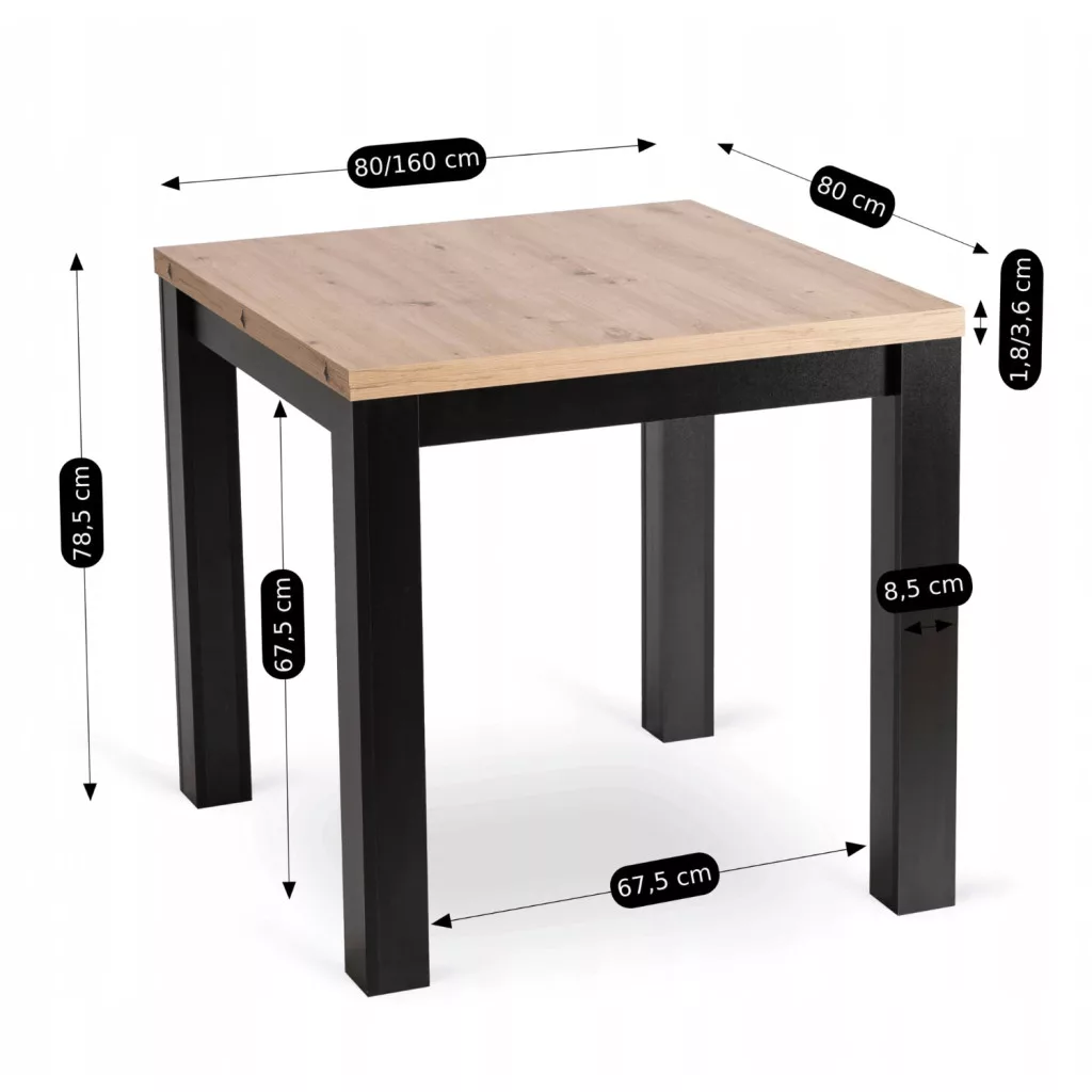 Kinyitható étkezőasztal MAX tölgy Artisan/fekete, forgácslapból. Alap: 80×80 cm, bővített: 80×160 cm, magasság: 78,5 cm.