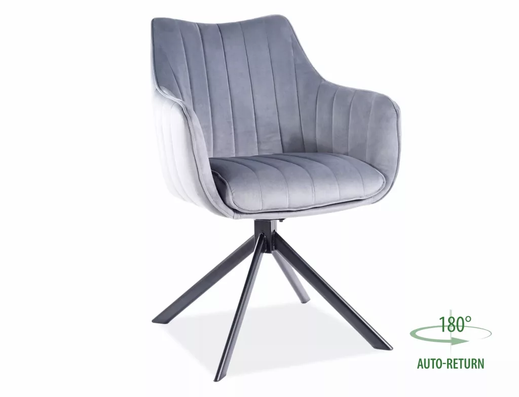 Fedezd fel a Chair Azalea Velvet szépségét, amely modern dizájnjával tökéletes kiegészítője lehet otthonodnak. A szürke velvet anyag és a matt fekete fémváz eleganciát sugároz, először egy 180 fokban forgatható ülés funkciója maximálisan biztosítja. Ideális választás a nappaliba vagy a konyhába, hogy stílusos és praktikus bútordarabbal gazdagítsd élettered.