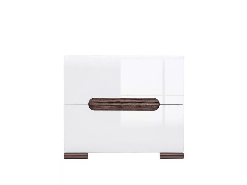 Azteca termékcsalád stílusos éjjeliszekrénye, mely a fehér és a fényes fehér kombinációjának, és a bútor praktikus kialakításának köszönhetően, bármelyik hálószobában megállja a helyét.