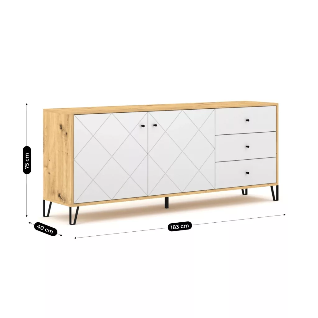 BACARDI Fiókos Komód 183 cm Artisan Tölgyfa/Fehér
