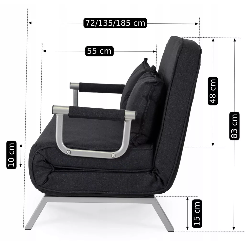 fekete BART 2 dönthető pihenőfotel egyszerre elégíti ki a kényelem és a stílus iránti igényt. Ez a dönthető fotel egyedi alternatívát kínál a hagyományos kanapékkal és kétszemélyes kanapékkal szemben. Minimalista, mégis érdekes dizájnja magára vonzza a figyelmet, miközben a legmagasabb szintű kényelmet biztosítja. Tökéletes megoldás modern belső terekbe, ahol az esztétika és a funkcionalitás egyaránt fontos. Igazítsa az igényeihez. A háttámla öt különböző pozícióba állítható, így gyorsan az aktuális igényeihez igazíthatja. Állítható magasságának köszönhetően kényelmesen ülhet benne, miközben könyvet olvas, filmet néz, vagy egyszerűen csak szundikál. Teljesen kihúzva a fotel egy praktikus, 185 x 100,5 cm-es ággyá alakul, amely egy vagy két fő számára biztosít kényelmes elhelyezést.
