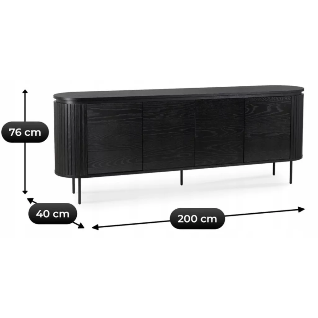 BECK Fiókos Komód 200 cm Négyajtós Fekete