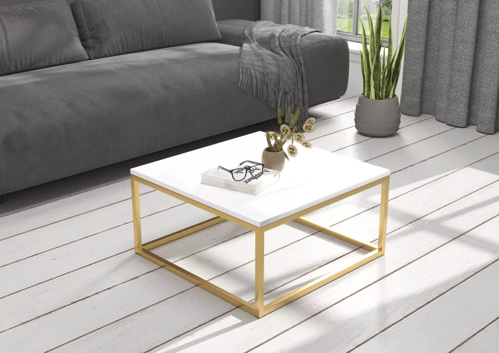 BELTEN 65x65 kávéasztal, Arany, Fehér