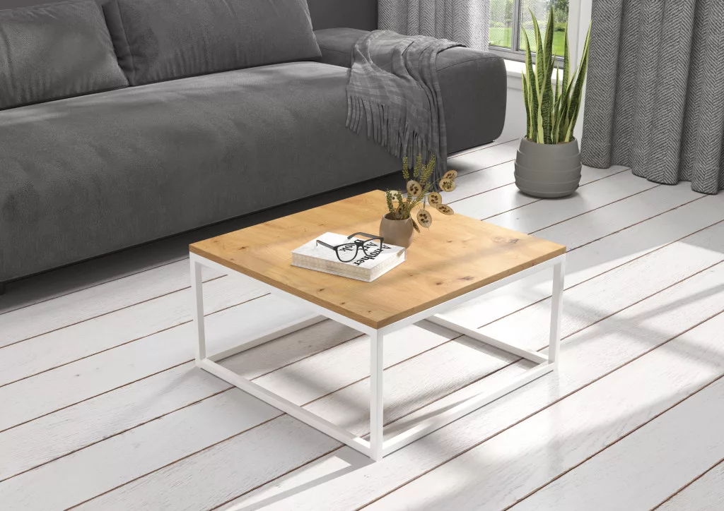 BELTEN 65x65 kávéasztal, Fehér, Artisan